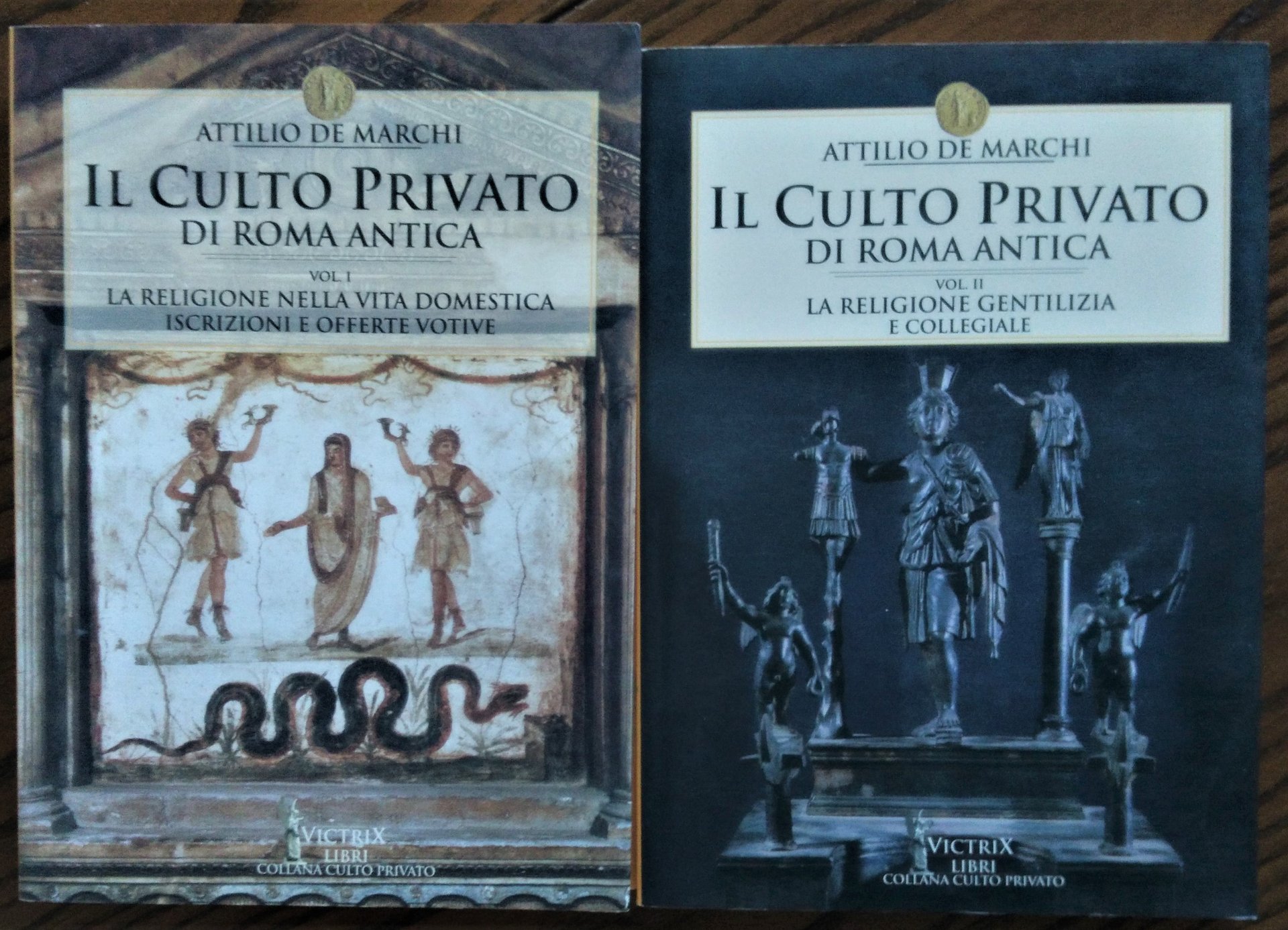 Forli, Victrix, 2003. 8°, due volumi, illustrazioni, brossura editoriali. Volume I - La religione nella vita domestica. Iscrizioni e offerte votive, pp. 248. Volume II - Religione gentilizia e collegiale, pp. 157. Ottime copie.
