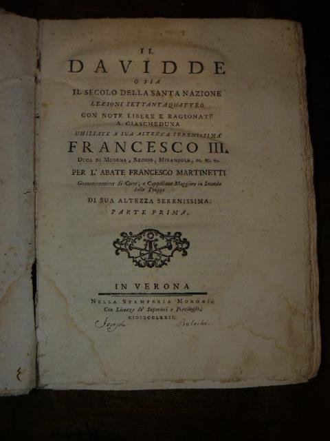 Il Davidde o sia il secolo della santa nazione. Lezioni settantaquattro con note libere e ragionate a ciascheduna umiliate a sua altezza serenissima Francesco III.