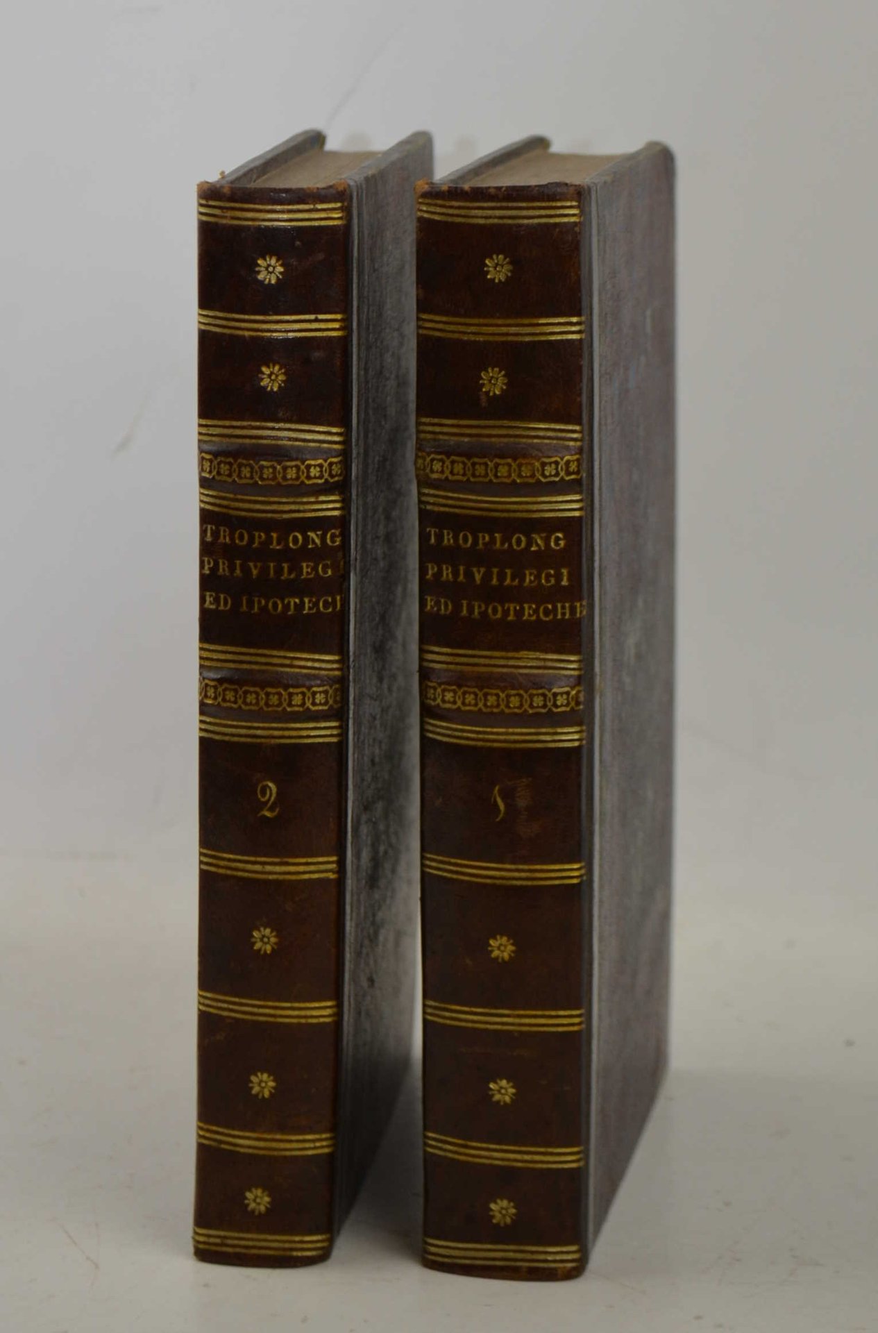 Due volumi di cm. 21, pp. 1000 circa complessive. Solida ed elegante leg. coeva in mezza pelle, dorso a nervi con titoli e fregi in oro. Ottima conservazione.