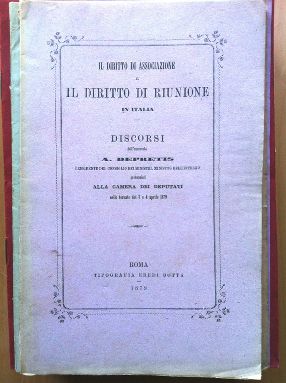 Il diritto di associazione e di riunione in Italia Depretis 1879 - E13931