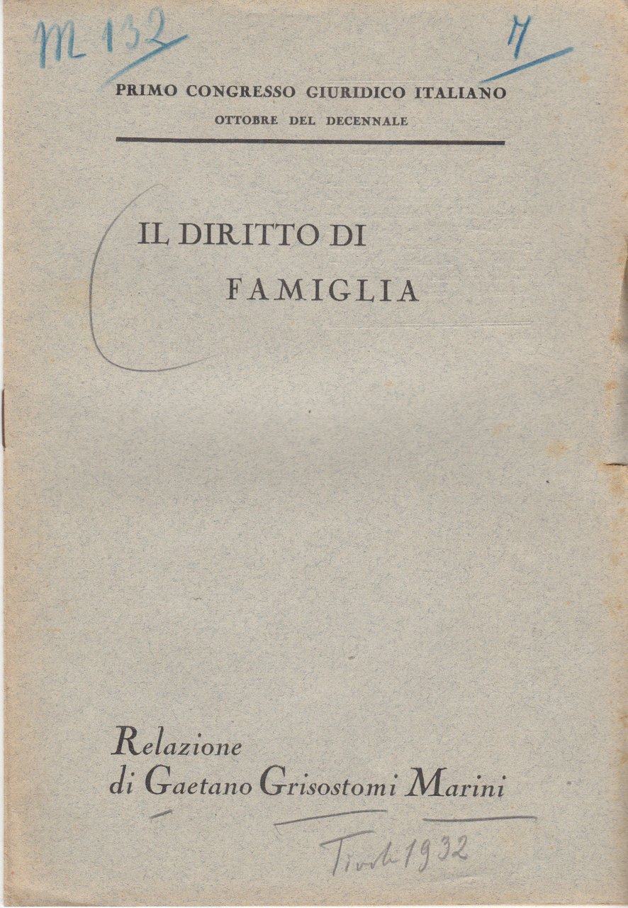 In-8 (Cm 26 x 18), pp 10, br. editoriale. Collana "Primo congresso giuridico italiano, ottobre del decennale". Brossura ant. con due numeri di archivio manoscritti a matita e due segnetti a lapis. Qualche leggera ingiallitura sparsa e piccoli strappetti al margine esterno. BUONO