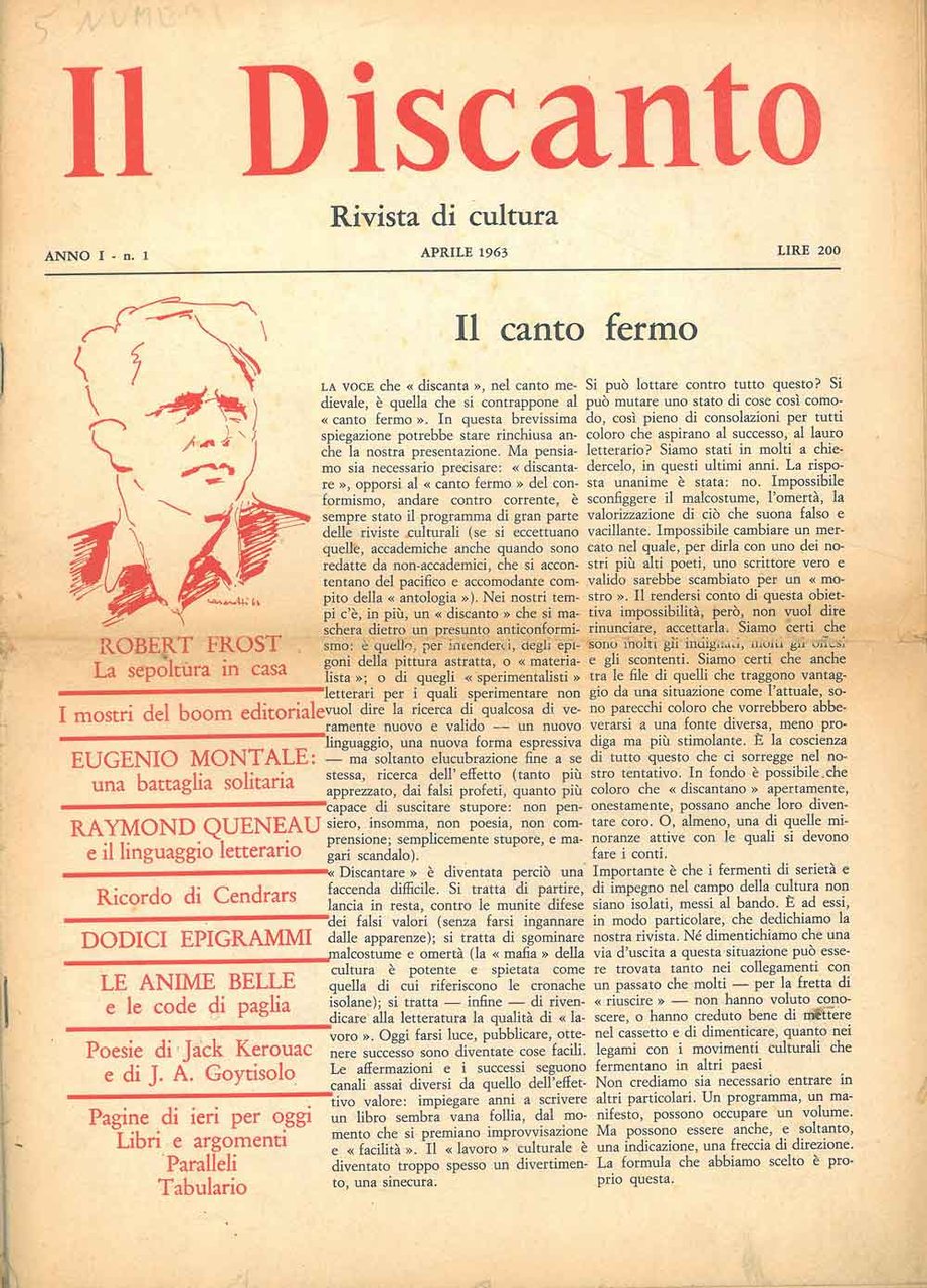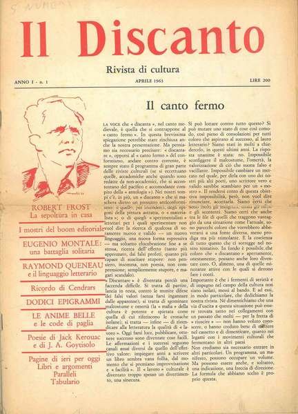 Il discanto: rivista mensile di cultura 1963 Consiglio di direzione: L. Conosciani F. De Poli A. Ernazza F. Parazzoli M. Venturi A. Faccio