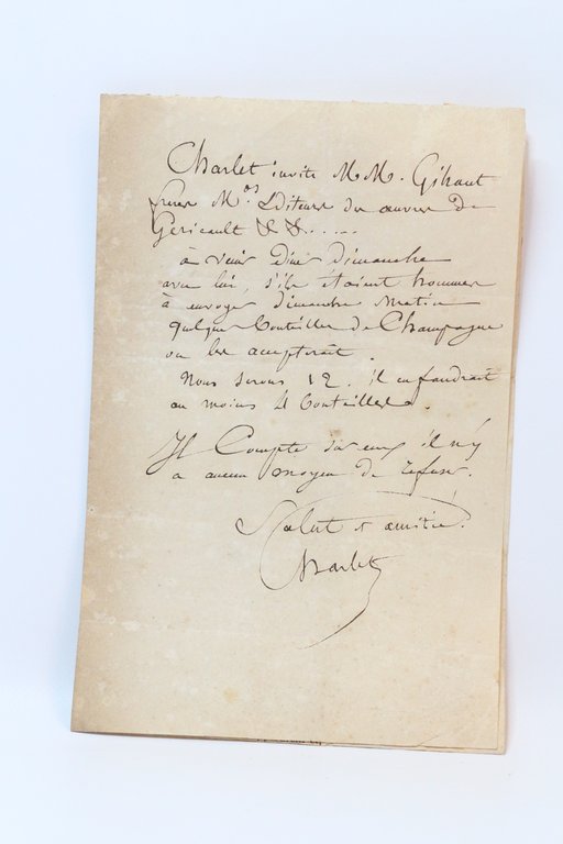 Il en faudrait au moins 4 bouteilles [de champagne] • Lettre autographe signée aux graveurs Gihaut