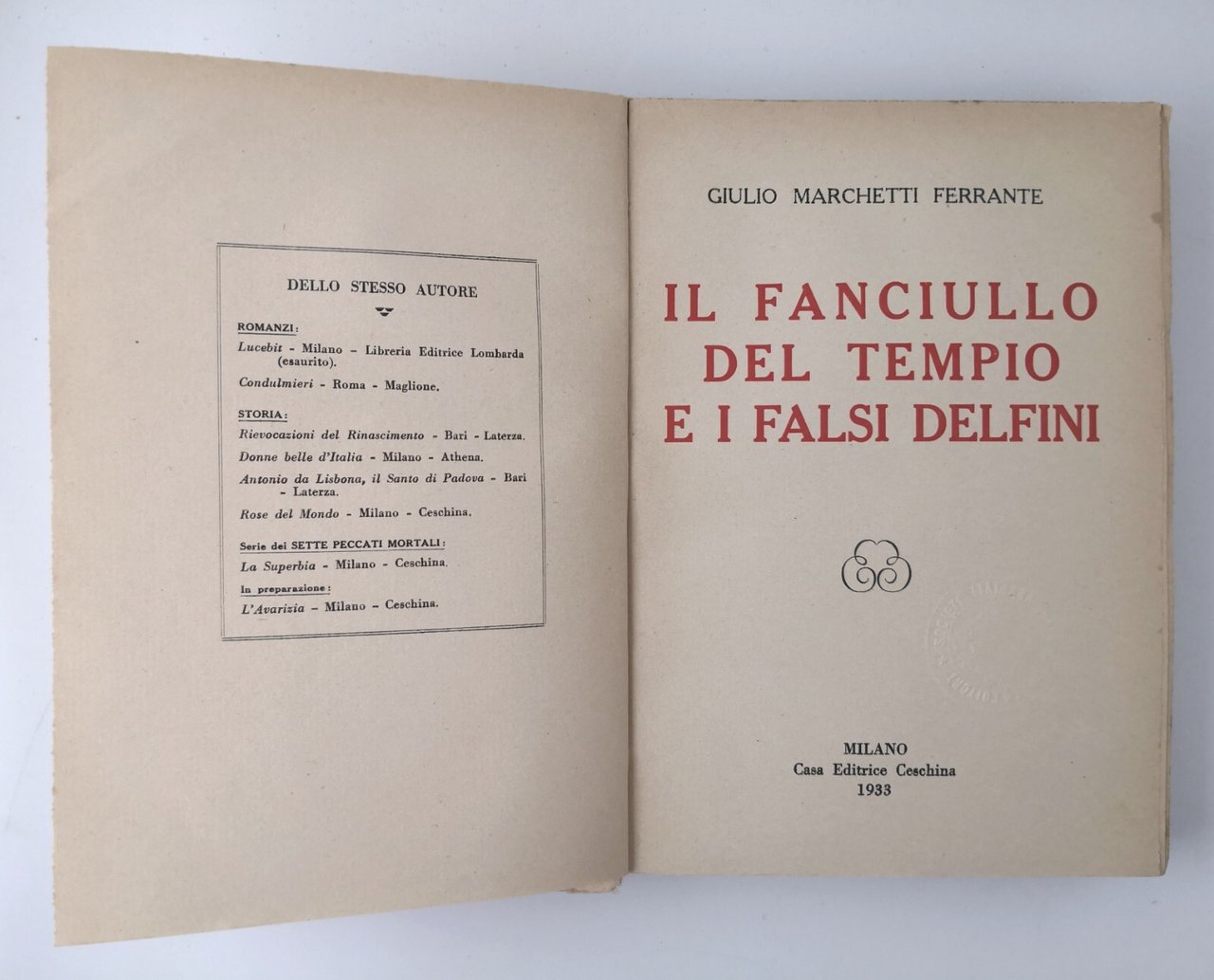 IL FANCIULLO DEL TEMPIO E I FALSI DELFINI di Marchetti Ferrante 1933 Ceschina