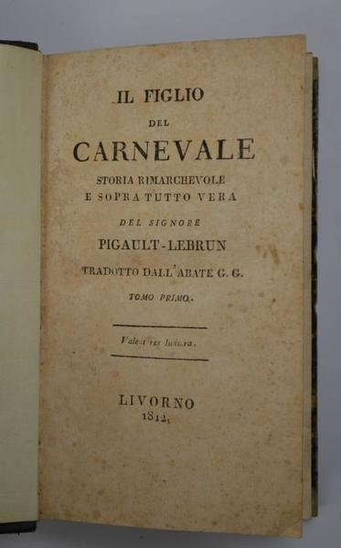 Il figlio del carnevale. Storia rimarchevole e sopra tutto vera. tradotto dall'abate G.g.