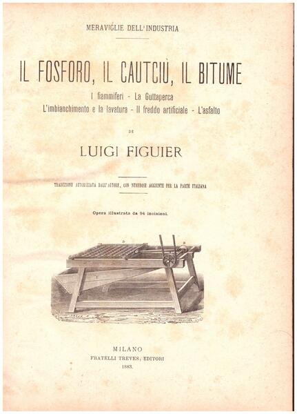4° mezza tela recente con tit. oro al dorso, pp. 250. Con 94 incisioni in legno nel testo. "Meraviglie dell'Industria". Buon esempl.