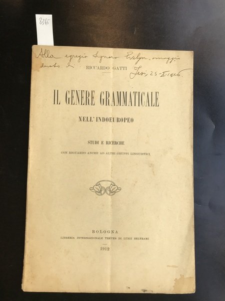 Il genere grammaticale nell'indoeuropeo. Studi e ricerche con riguardo anche ad altri gruppi linguistici.