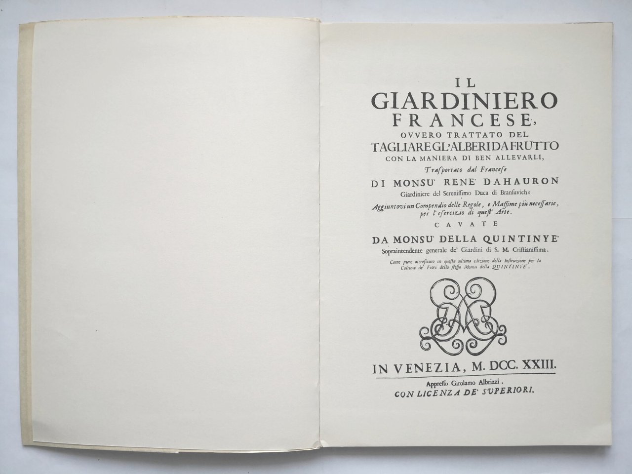 IL GIARDINIERO FRANCESE ovvero trattato del tagliare gl'alberi da frutto con la maniera di ben allevarli di René Dahauron.