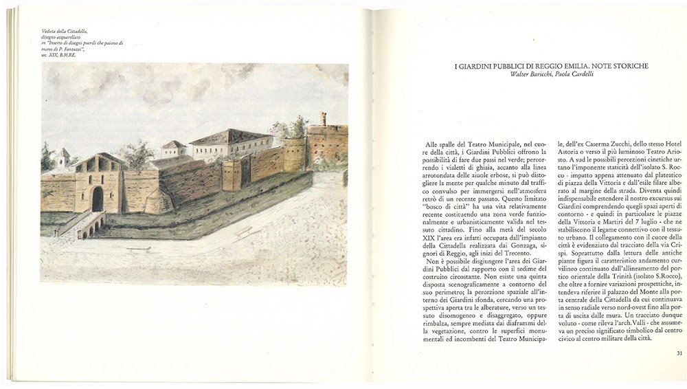 220x221 mm. 88 pp. Original illustrated wrappers. Texts by Virgilio Vercelloni, Walter Baricchi, Paola Cardelli, Alessandro Chiusoli, Elisabetta Bufferli, Marcella Minelli, Antonio Ferretti, Luigi Ghirri. Photographs by Luigi Ghirri, Marcello Grassi, Claudio Cigarini, Fototeca Panizzi. First edition.