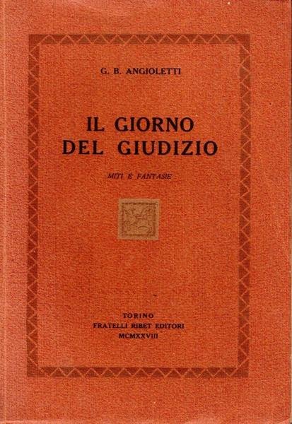 Il giorno del giudizio, prima edizione 1928, pp. 179, formato 13 x 20.<BR>Copertina morbida di colore marrone con titoli in nero al piatto anteriore e sul dorso. Presente in ultima pagina schizzo a lapis raffigurante un mezzobusto. Tiratura limitata in 600 esemplari numerati, nostra copia n. 378. <BR>Piccolo strappo nella parte superiore del dorso, altrimenti in ottime condizioni. <BR><BR>