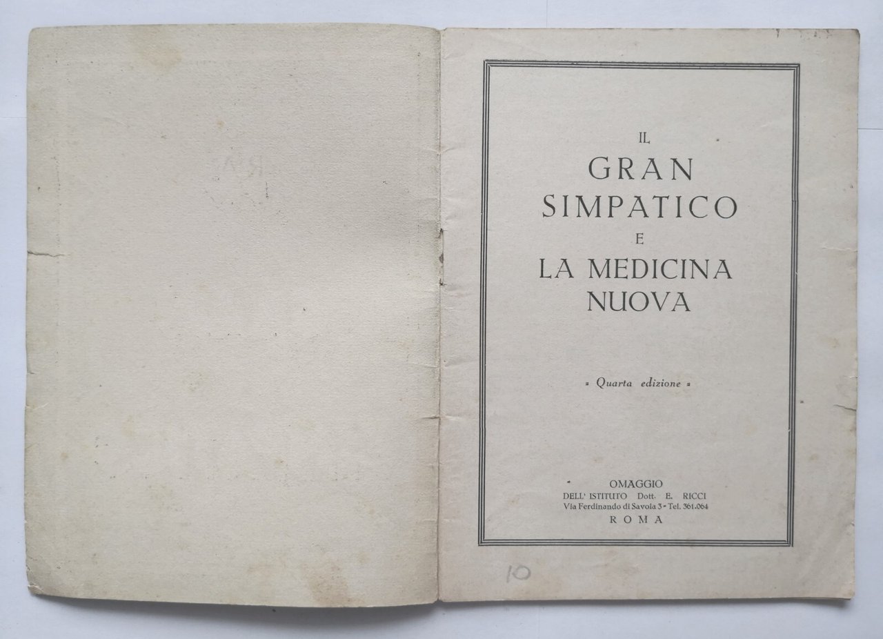 IL GRAN SIMPATICO E LA MEDICINA NUOVA Istituto Dott Ricci Libro