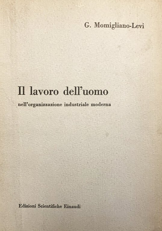 I ed., Serie per gli operai delle industrie meccaniche e per le scuole professionali: "Edizioni Scientifiche Einaudi", vol. 11 pubblicate da Paolo Boringhieri (Torino, via Brofferio, 3): La casa editrice Boringhieri nasce nel 1957 per iniziativa di Paolo Boringhieri, ex redattore della Einaudi, sulla base di quattro collane Einaudi fra cui la Biblioteca di cultura scientifica. "I corsi di fisiologia e organizzazione del lavoro, e l'apprendimento delle più importanti nozioni sulle tecnopatie e sugli infortuni del lavoro costituiscono parte integrante dei corsi di qualificazione e di perfezionamento della Scuola Olivetti" (dalla Prefazione dell'Autore, p. VII). In-8, pp. VIII+232, brossura con dorso in tela e piatti in cartone grigio. Con 31 figure in b/n fra le quali una in tavola patinata in antiporta. Stato buono (dorso della copertina ingiallito - pagine ingiallite). Indice: prefazione; G. M.-L. (Torino, maggio 1958) - Attitudini dell'uomo ed esigenze lavorative. Orientamento e selezione professionale (Generalità - I complessi attitudinali - Le occupazioni lavorative in relazione ai gruppi attitudinali che vi trovano particolare esercizio - I test psicotecnici - La selezione psicotecnica - L'orientamento professionale) - Il lavoro e la sua organizzazione nell'industria (La razionalità del lavoro dal punto di vista economico - La razionalità del lavoro dal punto di vista ebnergetico - La razionalità del lavoro dal punto di vista umano - La razionalità delle condizioni ambientali di lavoro) - Le malattie professionali e la loro prevenzione (Generalità - Malattie provocate da rumori e vibrazioni - Malattie provocate da agenti chimici - Malattie provocate da polveri sospese nell'atmosfera - Malattie provocate da modificazioni della pressione atmosferica - Malattie provocate da causa organizzata - Dermatosi professionali - Mezzi di prevenzione individuale da tecnopatie croniche) - Gli infortuni sul lavoro e la loro prevenzione (Generalità - Le cause degli infortuni sul lavoro - Gli infortuni alla luce della statistica - Gli infortuni da correnti elettriche - Gli infortuni da cause meccaniche - Gli infortuni da agenti chimici caustici - La prevenzione degli infortuni sul lavoro) - Lineamenti di legislazione sanitaria del lavoro (L'Istituto Nazionale Assistenza Malattie - L'Istituto Nazionale Assicurazione Infortuni sul Lavoro - L'Istituto Nazionale di Previdenza Sociale - Le disposizioni di legge)