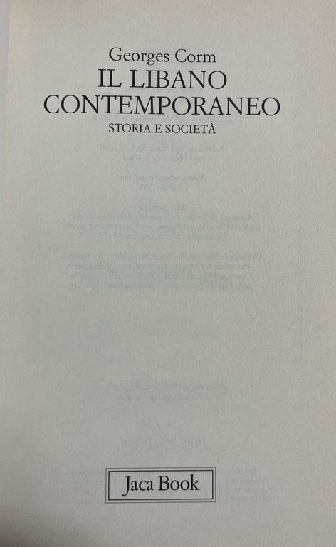 IL LIBANO CONTEMPORANEO. STORIA E SOCIETÀ