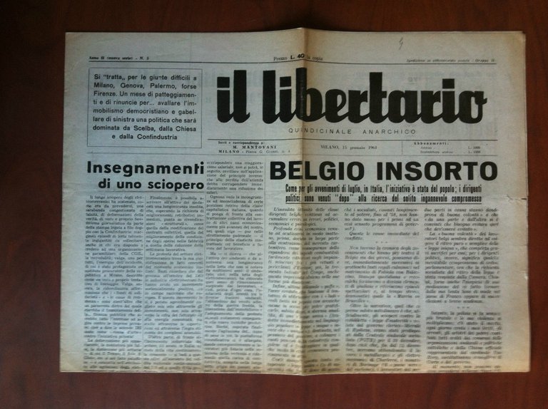 Il libertario Anno II n^ 5 - 15 Gennaio 1961 - E19730