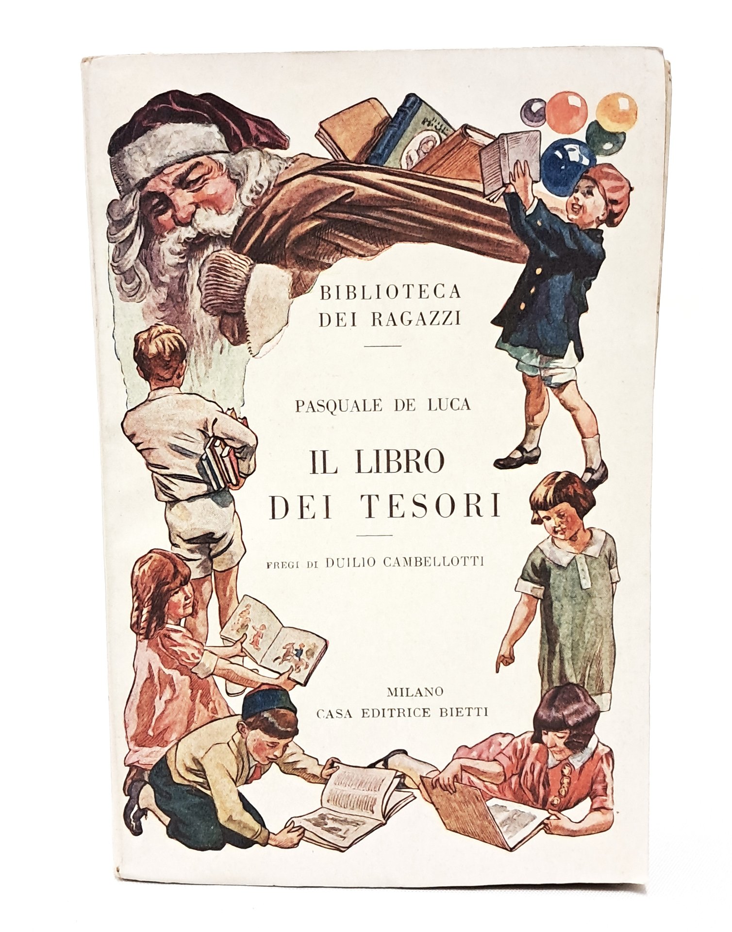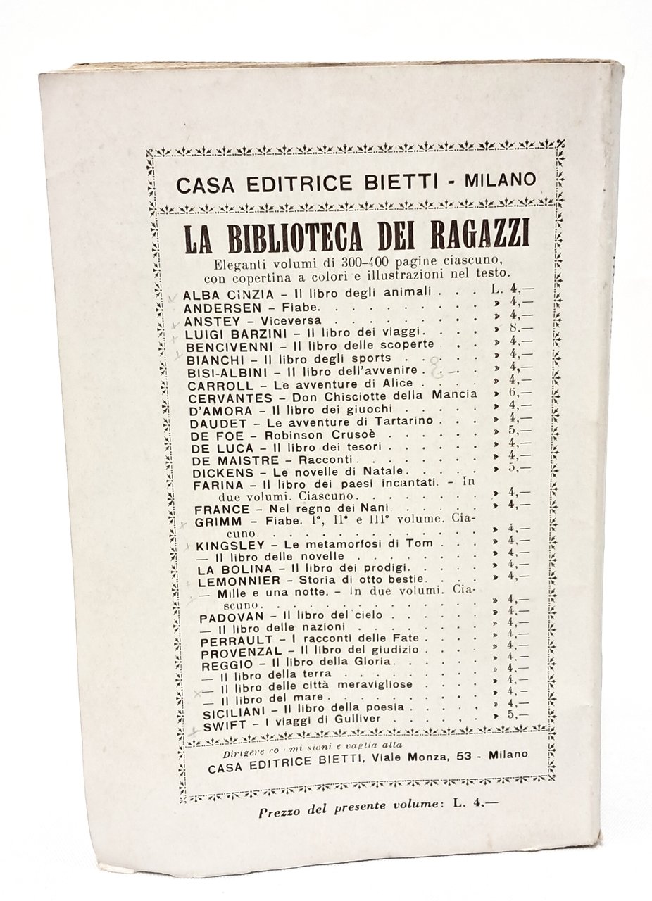 PRIMA EDIZIONE IN BROSSURA nella collana Biblioteca dei ragazzi diretta da Silvio Spaventa Filippi numero 23 con fregi di Duilio Cambellotti. INTROVABILE EDIZIONE IN BROSSURA ILLUSTRATA Volume per ragazzi con numerose tavole in bianco e nero fuori testo con riproduzioni di celebri opere d'arte italiane: volume di divulgazione artistica per la gioventù. Senza data ma pubblicazione primissimi novecento. Brossura. Pp. 167. Ottime condizioni.