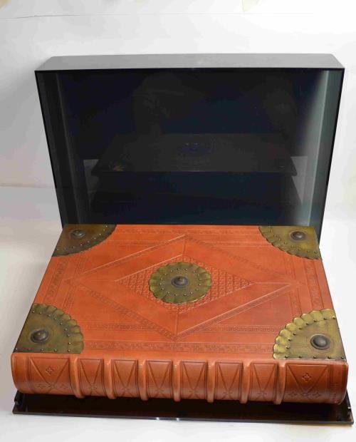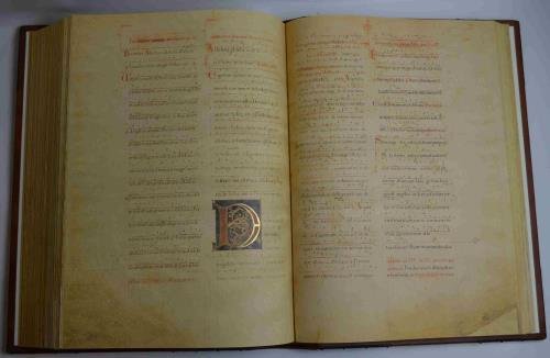 Cm. 51 x 34, pp. 904. Con disegni ed iniziate minate. Splendida legatura realizzata completamente a mano in piena pelle decorata a secco, dorso a nervi e con grandi borchie metalliche. Conservato entro custodia in plexiglass. Perfetta conservazione. Pregevole ristampa del celebre Codice 65, manoscritto del 1146 di particolare interesse sotto l'aspetto storico, paleografico, liturgico, artistico, come anche per la storia della musica, del teatro, della miniatura, delle scienze esoteriche, della medicina e dell'agricoltura. La presente edizione è stata realizzata nel formato originale.