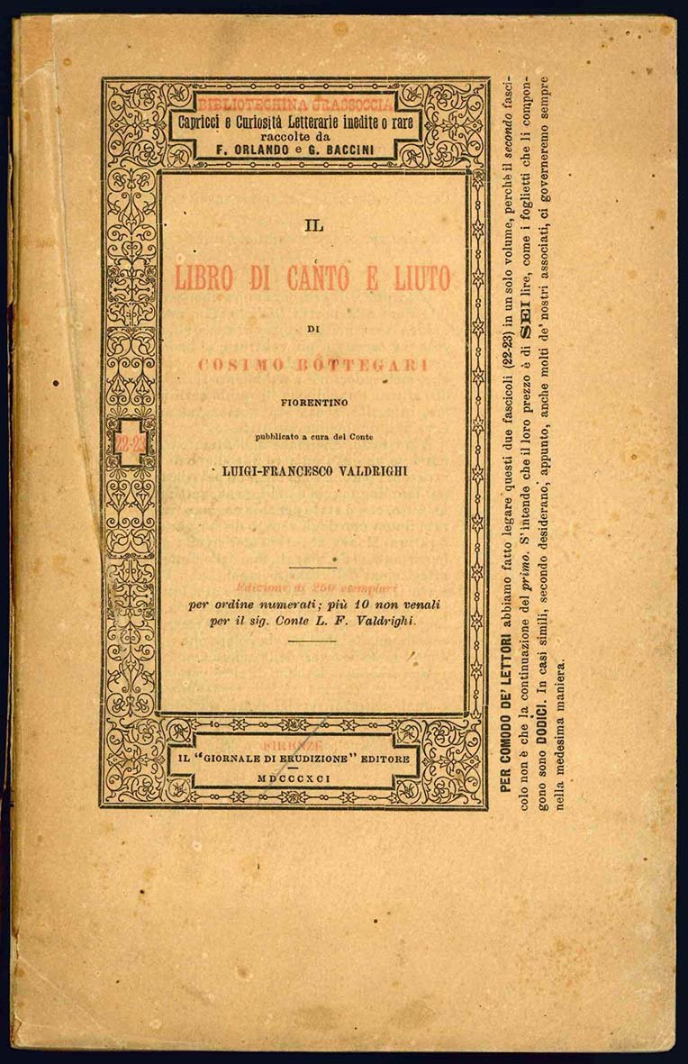 Il libro di canto e di liuto di Cosimo Bottegari fiorentino pubblicato a cura del Conte Luigi-Francesco Valdrighi.