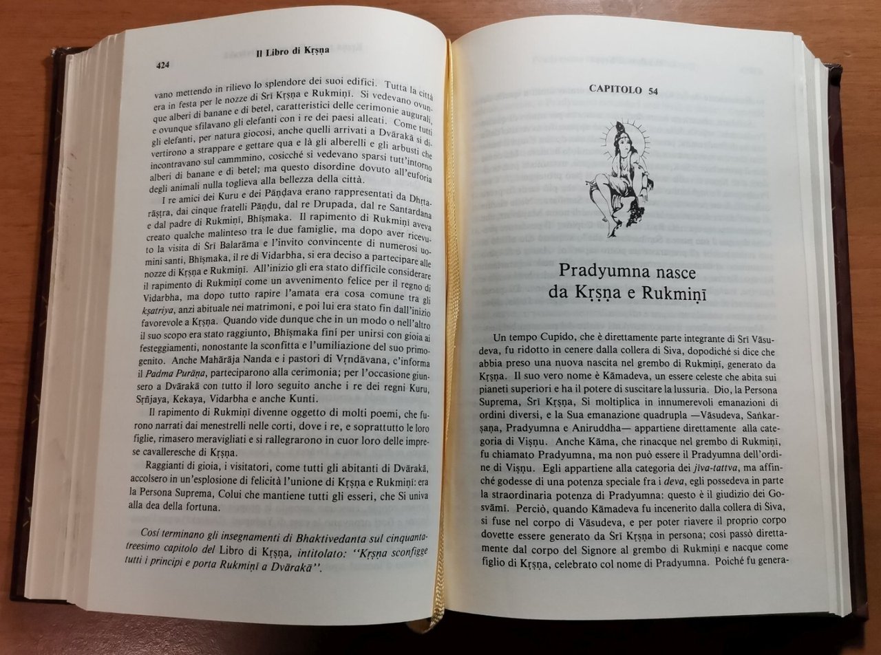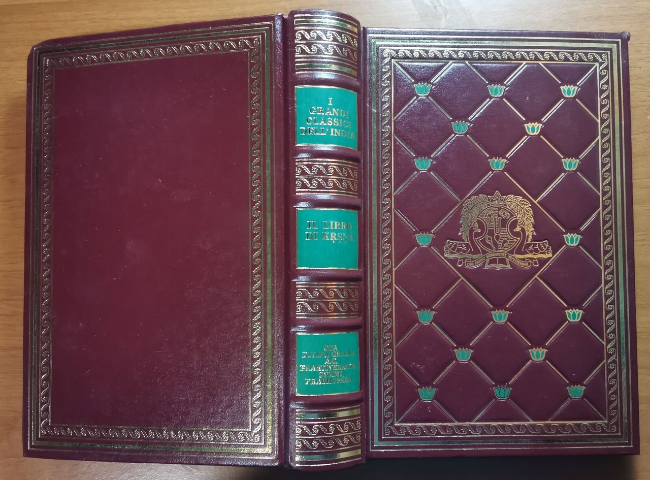 Edizioni Bhaktivedanda, Classici dell'India 1981. XXIII, 878 pagine, illustrazioni a colori fuori testo. Elegante copertina editoriale in finta pelle con fregi e scritte dorati al piatto e al dorso. stato di conservazione: molto buono (pagine normalmente ingiallite)