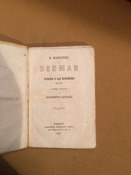 Il Marchese di Bedmar o Venezia e gli spanuoli nel 1618. Dramma storico.