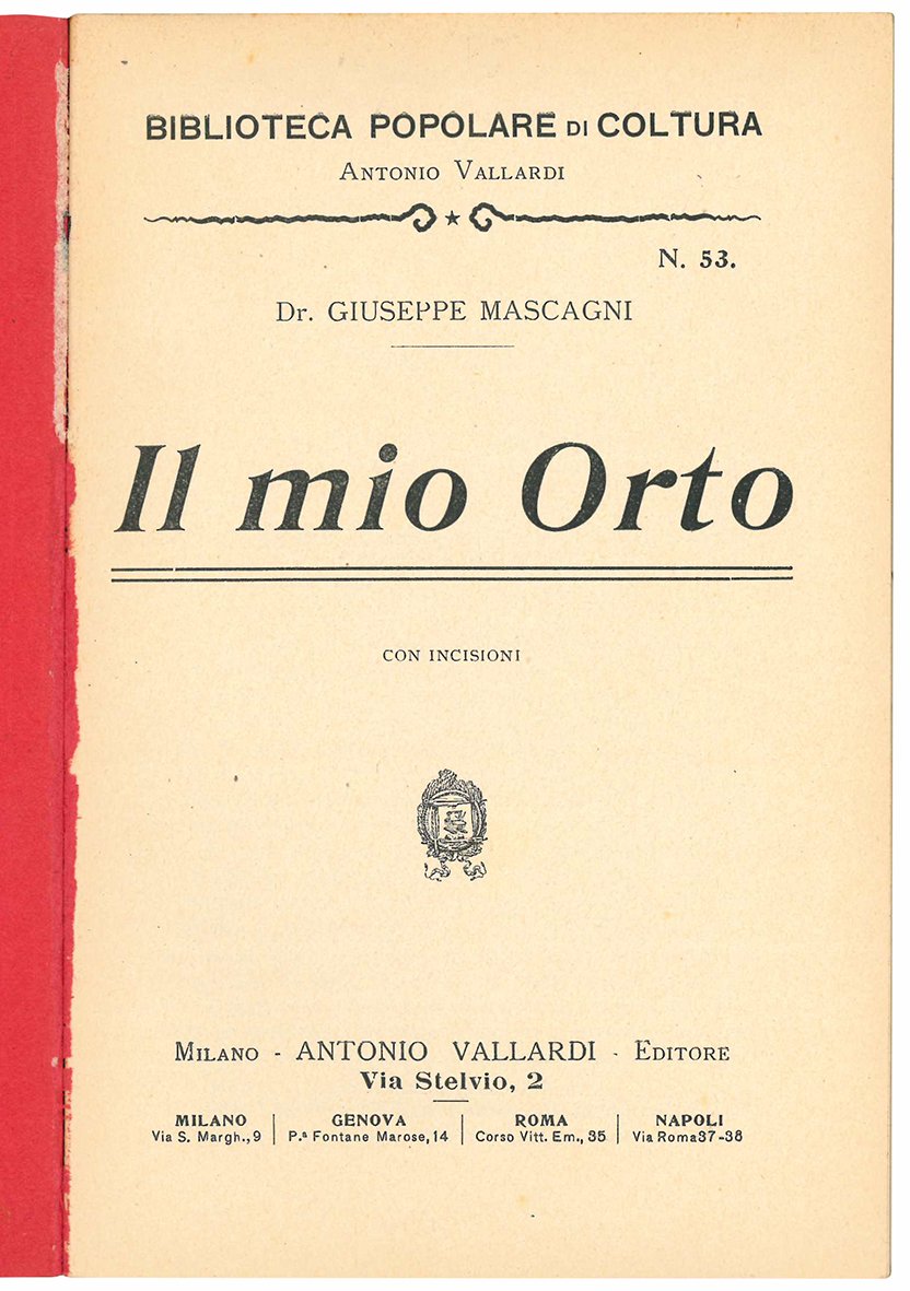 In 16mo (mm 185x121); pp. 144, [2] c. di tav. fuori testo. Illustrazioni in bianco e nero nel testo, due c. di tav. di illustrazioni a colori fuori testo. Brossura editoriale rossa con titolo stampato in nero entro cornice dorata alla copertina anteriore. Fa parte della collana: "Biblioteca popolare di coltura", N. 53. Ottimo esemplare ancora a fogli chiusi.