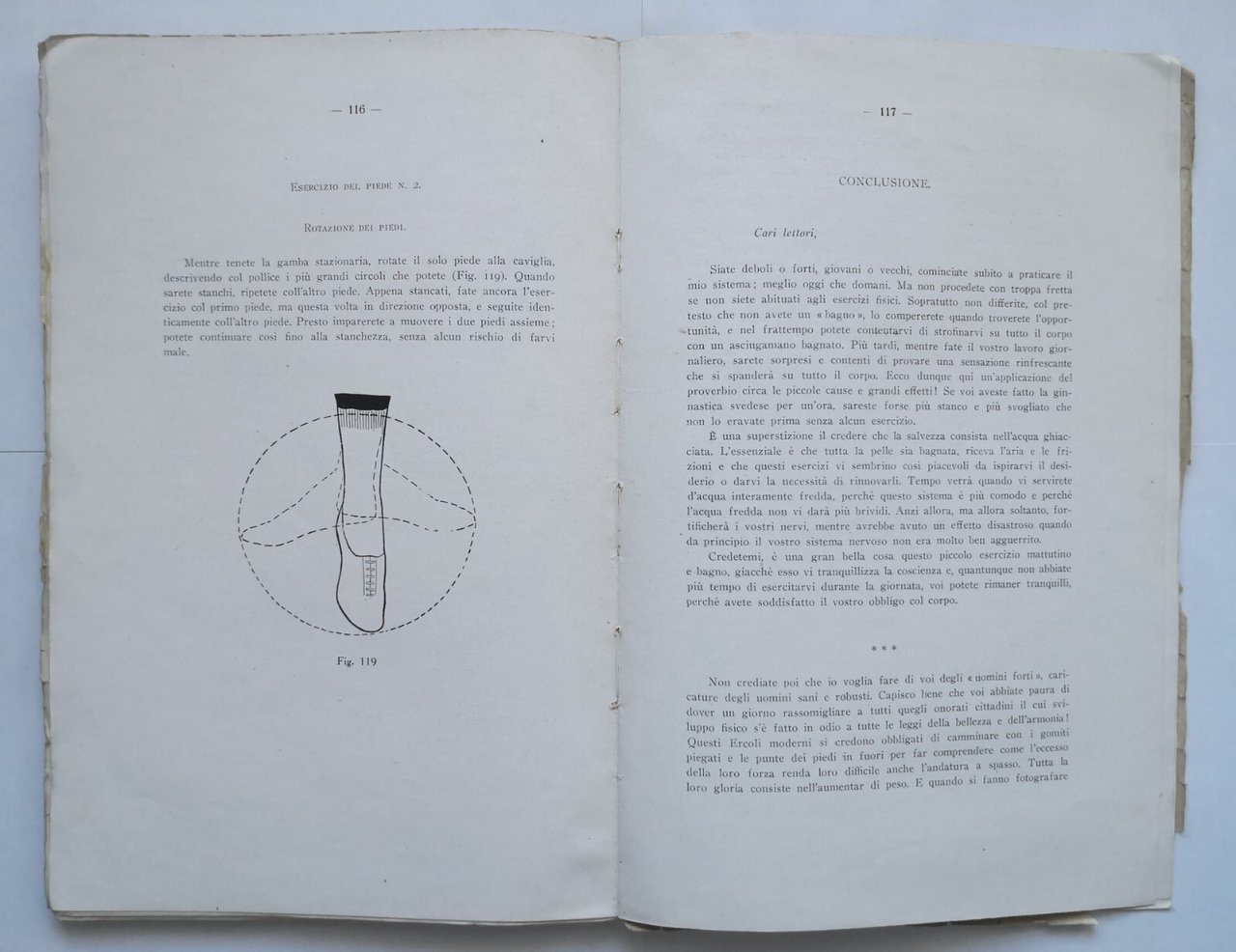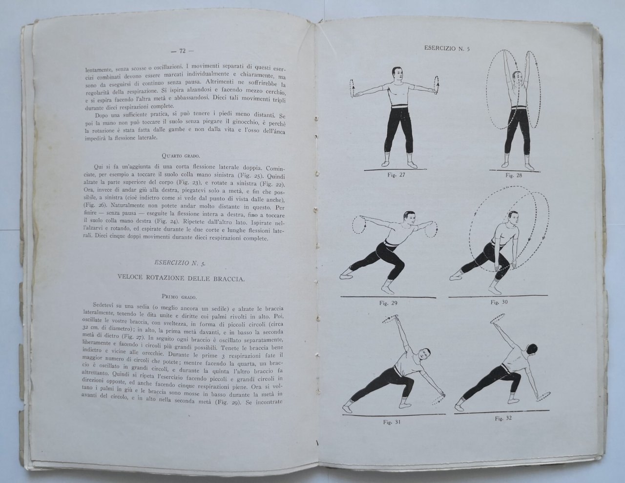 Casa Editrice Sperling & Kupfer, 1929. 123 pagine, 120 illustrazioni in bianco e nero nel testo e fuori testo. Copertina editoriale in brossura. Stato di conservazione: buono (pagine normalmente ingiallite, copertina sciupata con strappetti e piccole mancanze) Libro usato saggistica ginnastica sport