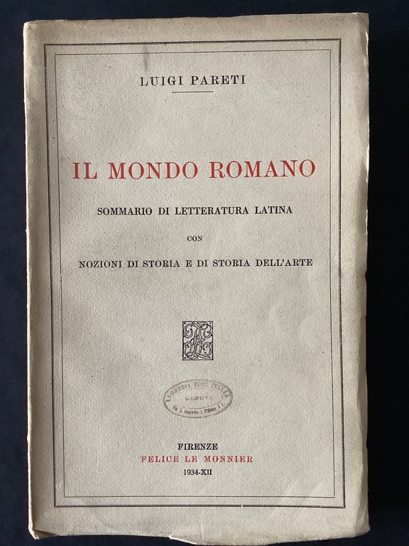 Cm.14x22, pp. 379, brossura editoriale bicroma. Firma d'appartenza alla sguardia. Intonso, ottime condizioni.