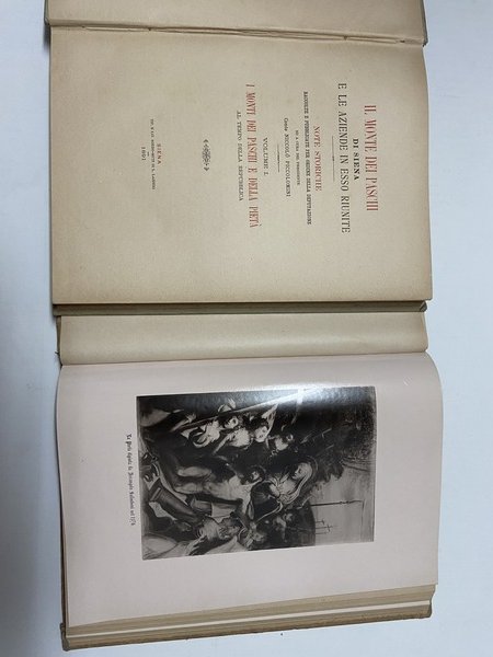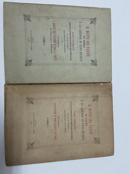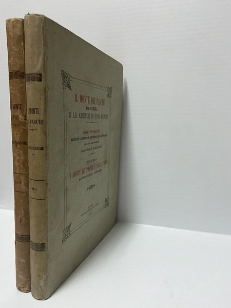2 voll., in 4°, cart. ed., 1° vol. - I Monti dei Paschi e della Pietà al tempo della Repubblica, pp. 310 con alcune ill. 2° vol. - Ricostituzione dei Monti di Pietà e dei Paschi, pp. 324 con alcune ill.