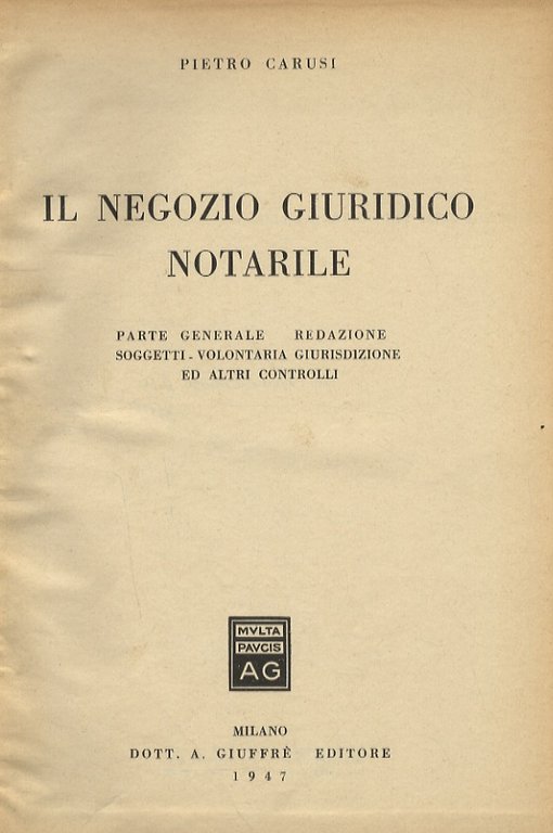 Il negozio giuridico notarile. Parte generale. Redazione. Soggetti. Volontaria giurisdizione ed altri controlli.