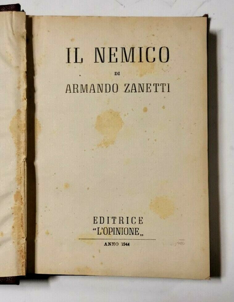 IL NEMICO di Armando Zanetti 1944 Editrice L'opinione libro narrativa romanzo