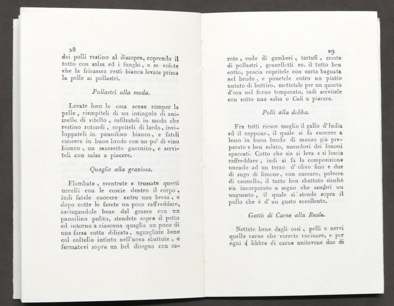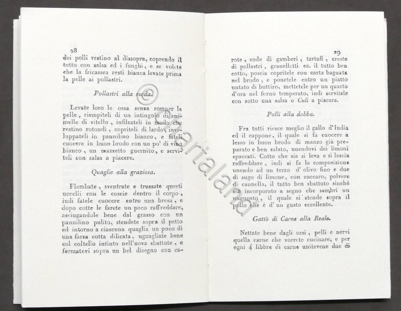 Ristampa anastatica dell'edizione stampata in Milano, Tipografia Tamburini, Contrada S. Raffaele, in data imprecisata ( anni 80/90 ) (?) Edizione numerata di 199 esemplari riservata al Ristorante La Piazzetta di Origgio Esemplare N. 162. Pag. 107 Copertina morbida - Testo in italiano. Condizioni molto buone.