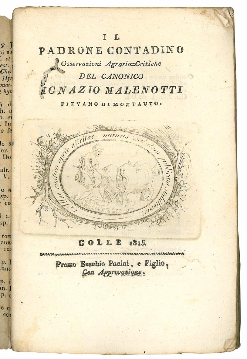 Il padrone contadino osservazioni agrario-critiche del canonico Ignazio Malenotti pievano di Montauto.