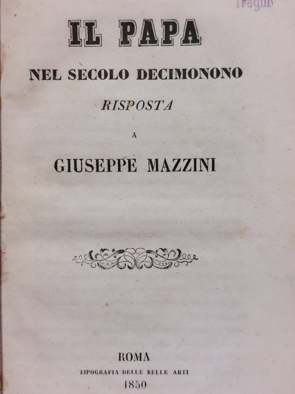 Il papa nel secolo decimonono. Risposta a Giuseppe Mazzini.