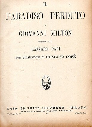 Tradotto da Lazzaro Papi con illustrazioni di Gustavo Doré. Parziale distacco della costa Piccolissime mancanze al dorso