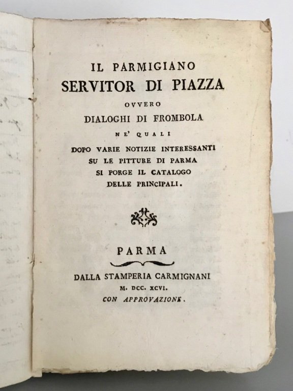 Il Parmigiano servitor di piazza, ovvero dialoghi di Frombola ne' quali dopo varie notizie interessanti su le pitture di Parma si porge il catalogo delle principali.