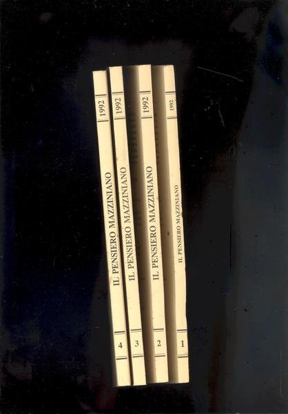 QUATTRO VOLUMI IN 8°, di pp.88 CIASCUNO, COPERTINE EDITORIALI CON TITOLO SU FONDO AVORIO. PERIODICO DELL'ASSOCIAZIONE MAZZINIANA ITALIANA. ANNO XLVII - NUOVA SERIE,<BR>1992, CADENZA TRIMESTRALE. DIRETTORE RESPONSABILE PIERGIOVANNI PERMOLI.<BR>L'ASSOCIAZIONE MAZZINIANA ITALIANA, FONDATA CLANDESTINAMENTE NEL 1943 DURANTE<BR>LA RESISTENZA, SI REGGE SULL'AUTOFINANZIAMENTO.ID 1753
