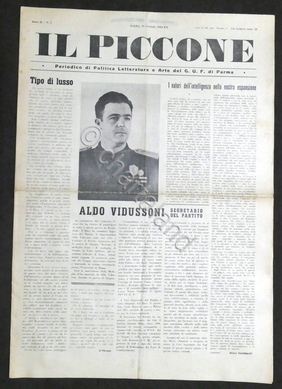 Giornale Il Piccone - Periodico di politica letteratura e arte - G.U.F. di Parma - Anno II - N. 1 - 1942