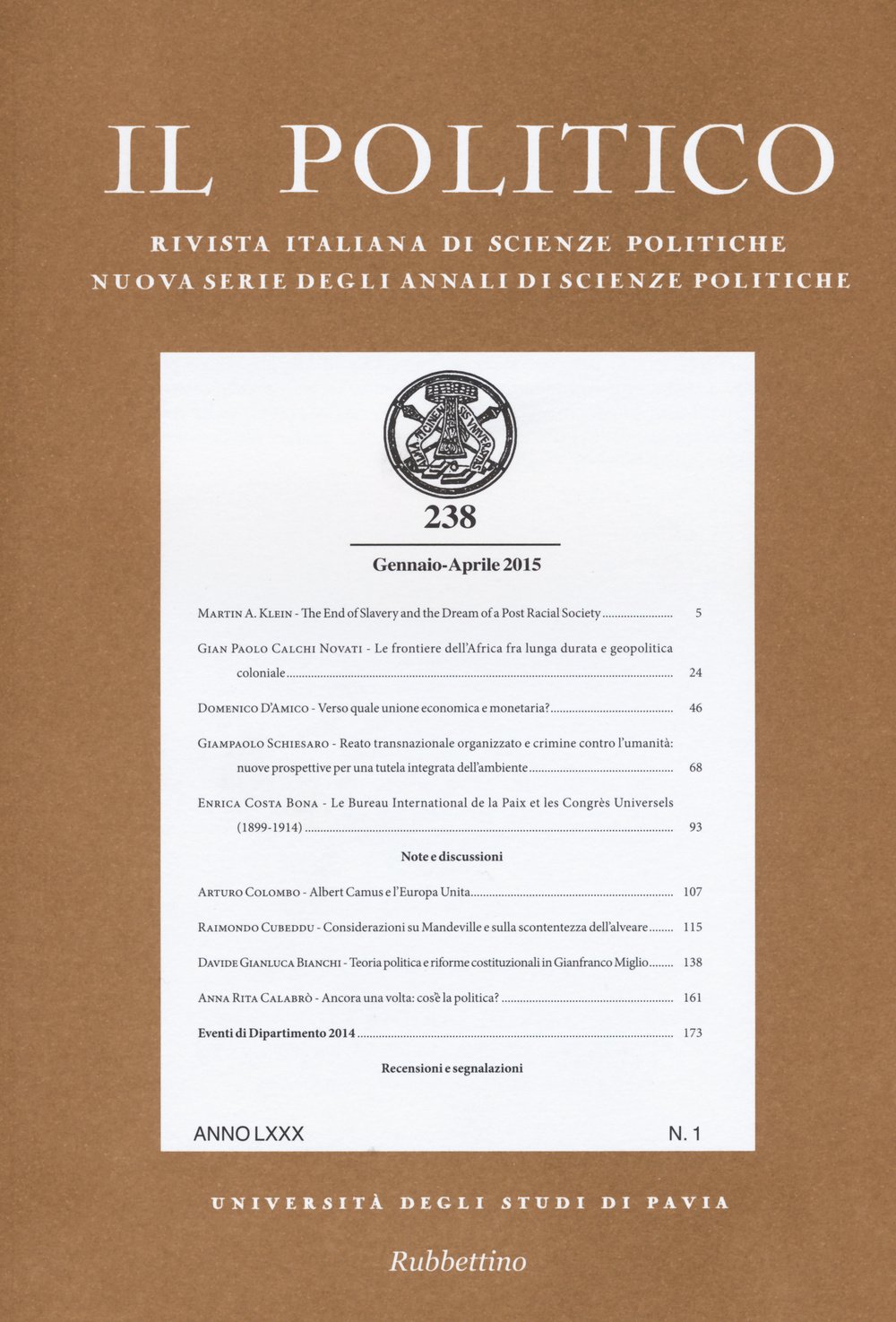 Il politico. Rivista italiana di scienze politiche. Vol. 238