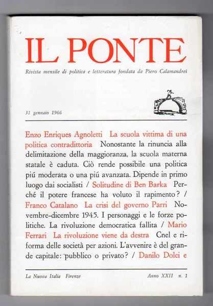 Il Ponte Rivista mensile di politica e letteratura fondata da Pietro Calamandrei - Annata 1966 comprende 9 fascicoli da gennaio a ottobre 1966, sono mancanti novembre e dicembre