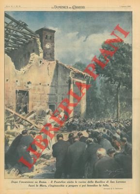 Il Pontefice in visita alle rovine della Basilica di San Lorenzo dopo l'incursione su Roma.