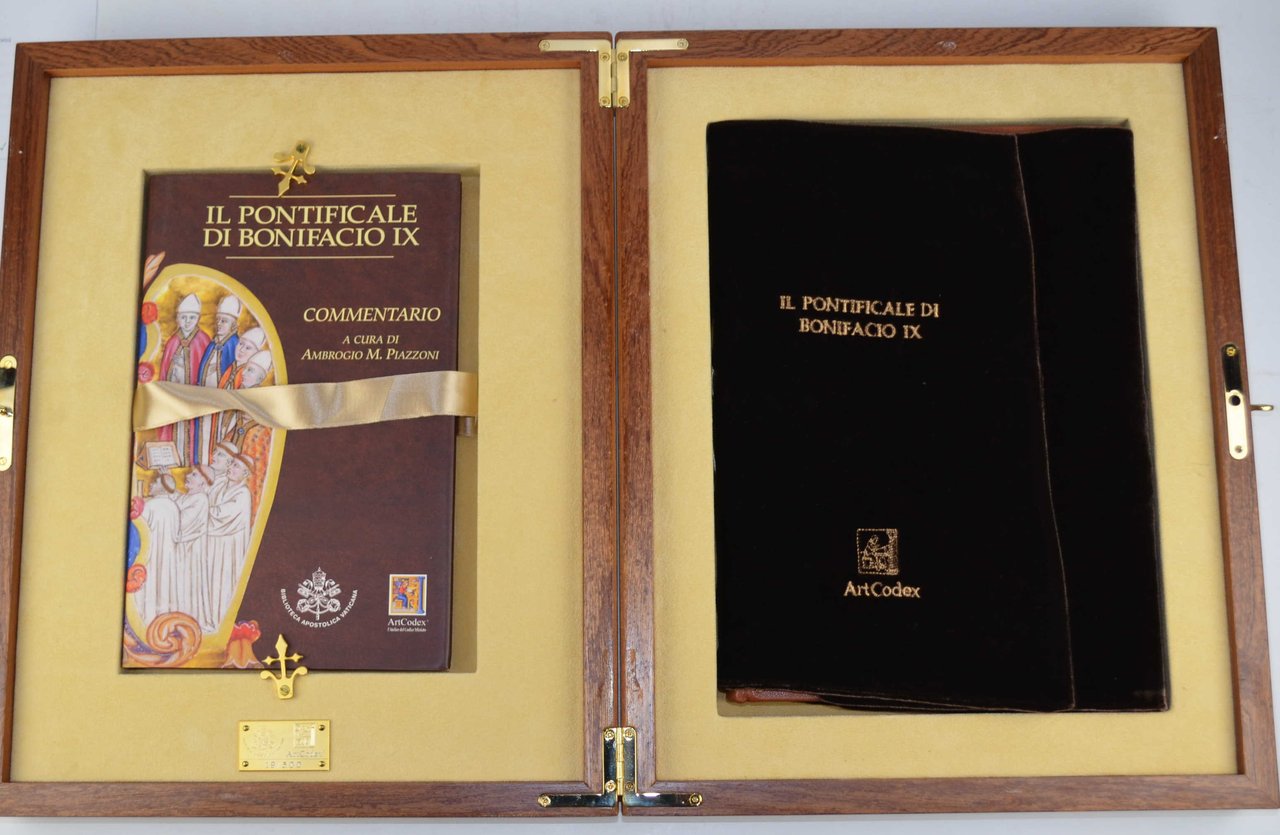 Un volume di cm. 31, pp. (88) stampate su carta pergamenata con la riproduzione del codice. Con molte miniature, anche a piena pagina. Legatura in piena pelle, dorso a nervi con titoli e fregi in oro. Insieme ad un volume di commentario di cm. 27, pp. 159 (1). I due volumi contenuti in un cofanetto in radica con chiusure in metallo dorato. Il tutto in perfetta conservazione, in stato di nuovo. Edizione limitata di 500 esemplari numerati.