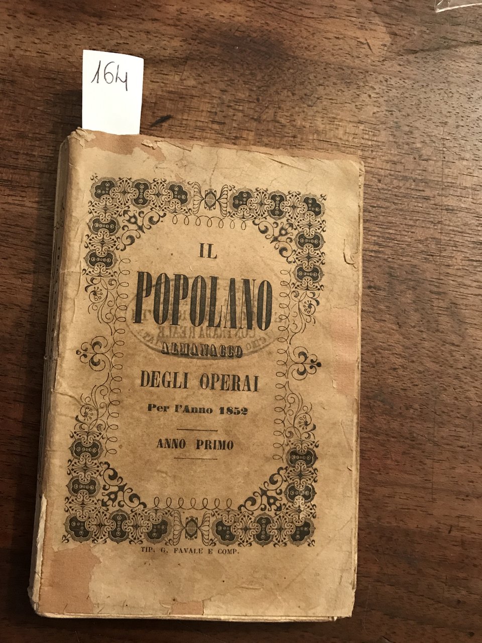 Il popolano almanacco degli operai per l'anno 1852 Anno I