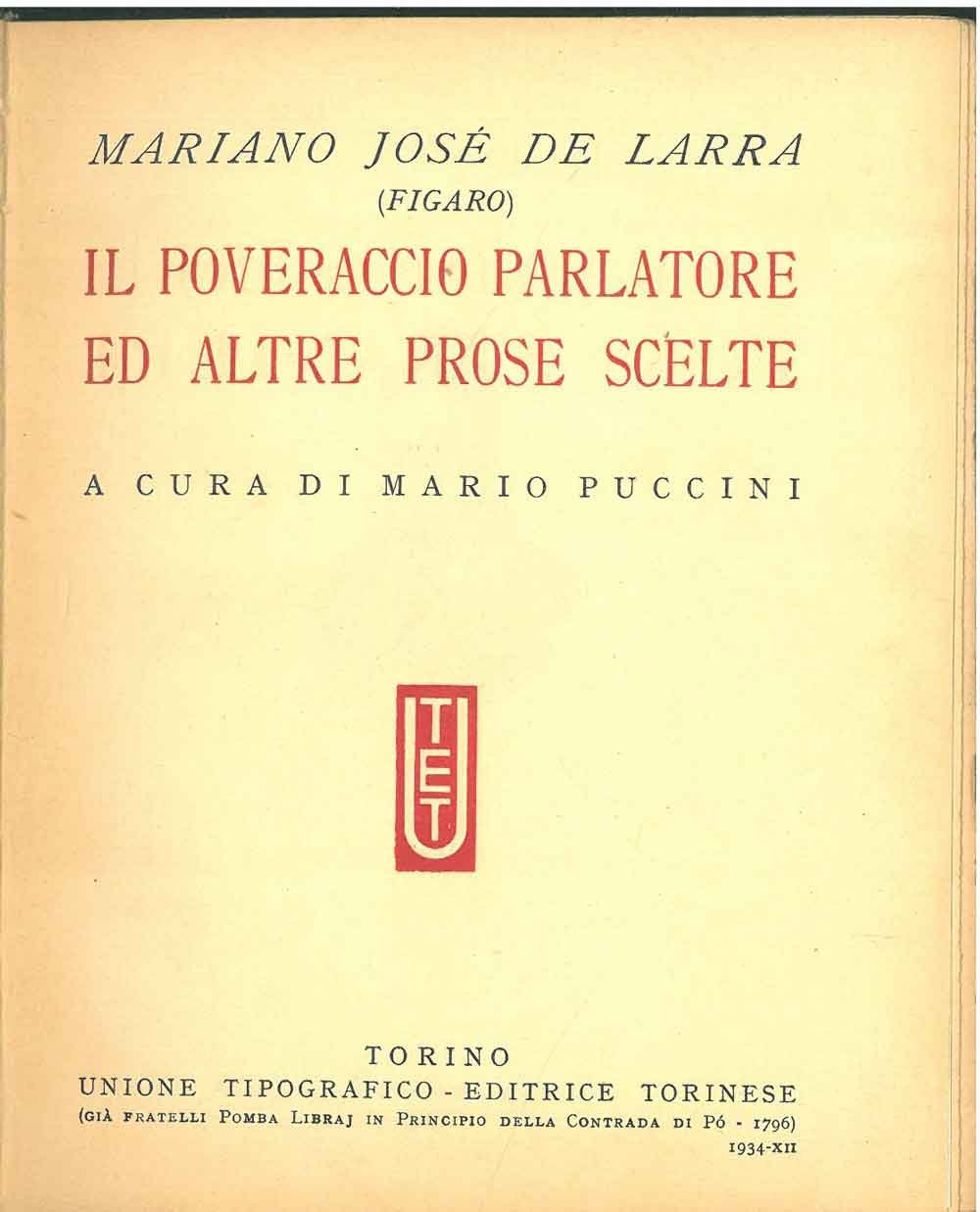 Il poveraccio parlatore ed altre prose scelte A cura di M. Puccini