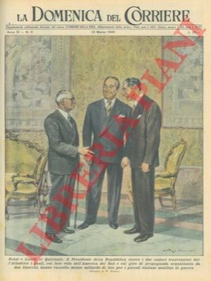 Il Presidente della Repubblica riceve i due aviatori che hanno raccolto mezzo miliardo di lire per i piccoli italiani mutilati di guerra (Lualdi e Bonzi).