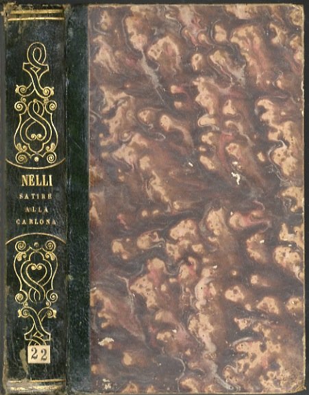 Venezia, per Pavolo Gherardo, per Comin de Trino de Monferrato, 1548, volumi 2 legati in uno, in-16, legatura ottocentesca in mezza pelle verde con titolo e decorazioni romantiche in oro al dorso, cc. 80 - 96, [4]. Con marca tipografica al frontespizio e sull'ultima pagina al primo titolo, sul frontespizio al secondo. Lievi aloni. Primo frontespizio controfondato. Esemplare rifilato. Timbretti di biblioteca gentilizia alla prima opera. Ristampa immediatamente successiva alle originali (1546 e 1547). Brunet, I, 266: “Dans l'exemplaire que j'ai vu la 1er partie, datée de 1548 a 80 ff. [.] et la 2e partie, de 1547, intitulée “sicondo libro” a 100 ff. en tout”. Per Pietro Nelli cfr. P. Floriani “Ariosto come modello: il caso di Pietro Nelli” in “Fra satire e rime ariostesche”, Cisalpino, 2000. Raro.