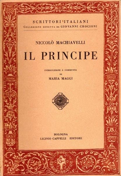 Il principe, prima edizione gennaio 1949, pp. 182, formato 14 x 19,5.<BR>Copertina morbida illustrata con titoli in nero al piatto anteriore. Introduzione e commento di Maria Maggi. Collezione diretta da Giovanni Crocioni.<BR>Imperfezioni alla costola. Lievi segni del tempo. Nel complesso buone condizioni.