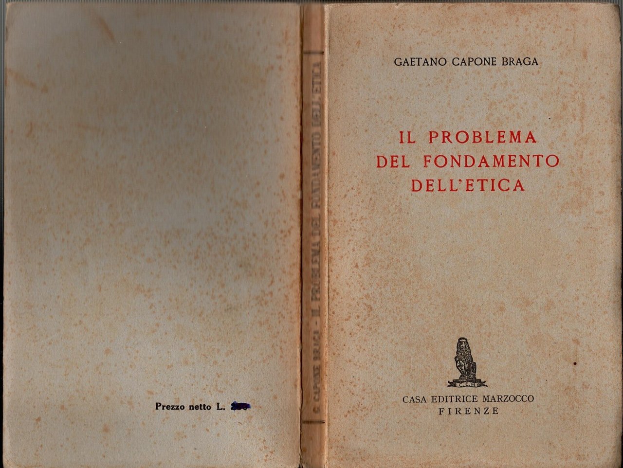IL PROBLEMA DEL FONDAMENTO DELL'ETICA di Gaetano Capone Braga 1945 Marzocco Libr | Libri antichi e moderni |