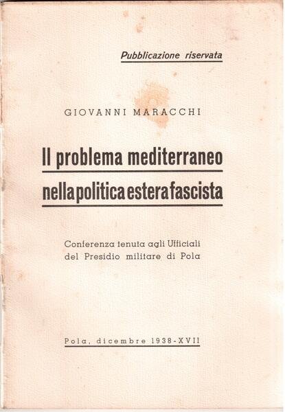 Il problema del Mediterraneo nella politica estera fascista Conferenza tenuta agli Ufficiali del Presidio militare di Pola