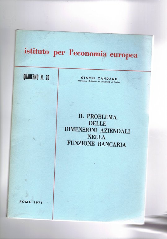 Il problema delle dimensioni aziendali nella funzione bancaria. Quaderno n° 20 dell'istituto per l'economia europea.