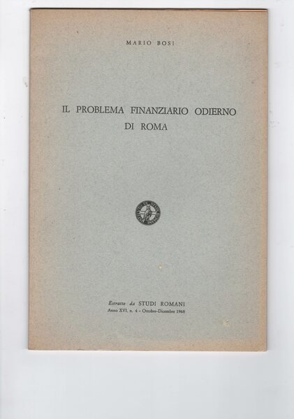 Il problema finanziario odierno di Roma. Estratto da Studi Romani n. 4 del 1968.