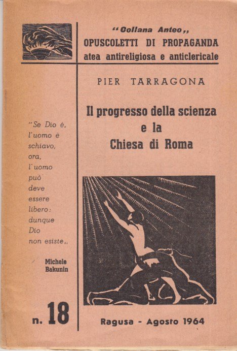 In-16 (Cm 17,3 x 12), pp. XII-48, brossura editoriale, collana Anteo Opuscoletti di propaganda atea, antireligiosa e anticlericale, 18. Nornali segni del tempo. MOLTO BUONO